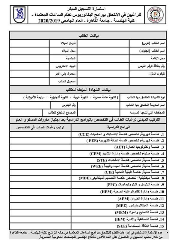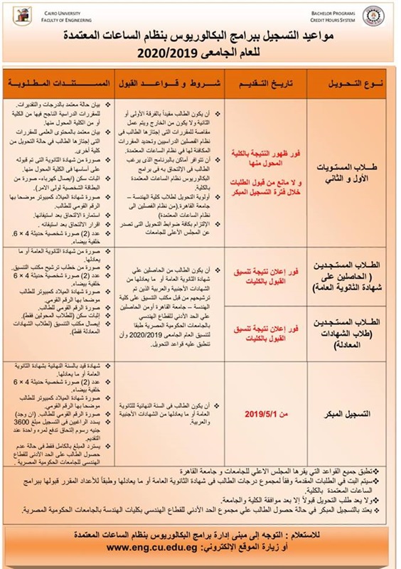 أنه يعفي طلاب كلية الهندسة جامعة القاهرة برامج الفصلين المستويات الأعلي الراغبين