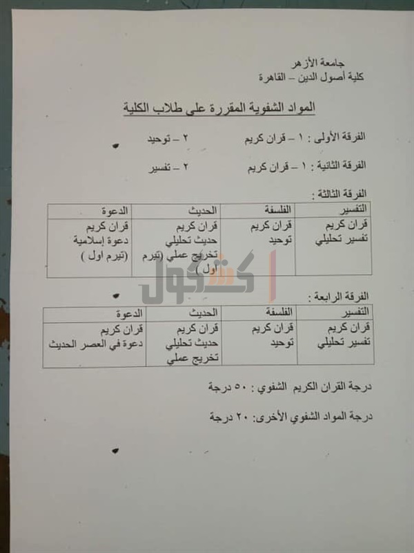 أعلنت كلية أصول الدين والدعوة بجامعة الأزهر، عن المواد التى من المقرر أن يؤدى فيها طلاب الكلية الامتحانات الشفوية للعام الدراسى 2018-2019، وذلك لجميع الفرق المنتسبة إلى الكلية.