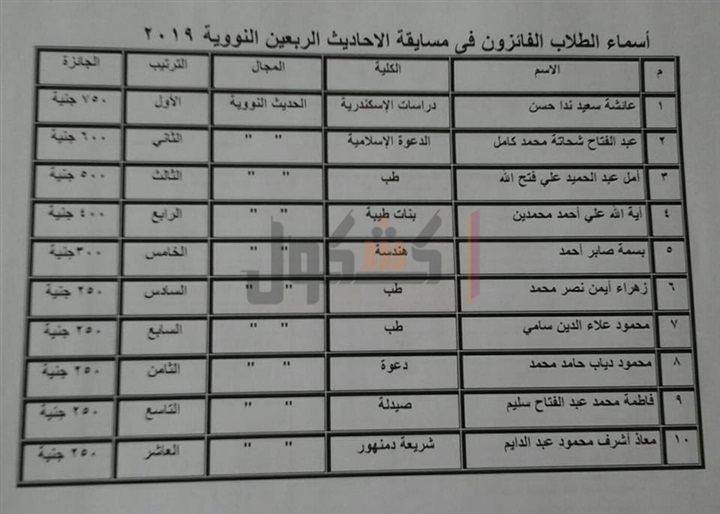 رعايا طلاب الأزهر تعلن أسماء الفائزين فى مسابقة الأربعين النووية