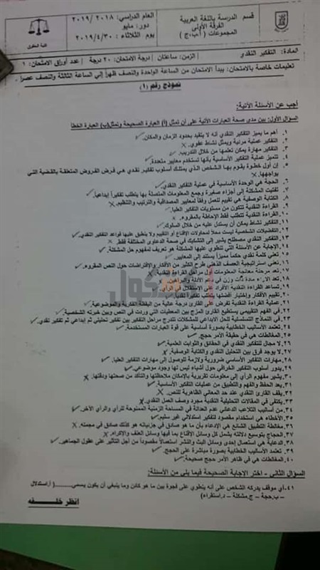 ننشر امتحان "التفكير النقدي" بجامعة القاهرة