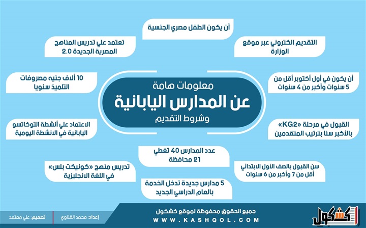 جراف 11 معلومة عن المدارس اليابانية (انفوجراف) محمد القناوي الأربعاء 01/مايو/2019 - 12:13 م 5/1/2019 12:13:00 PM طباعة facebook twitter whats شارك