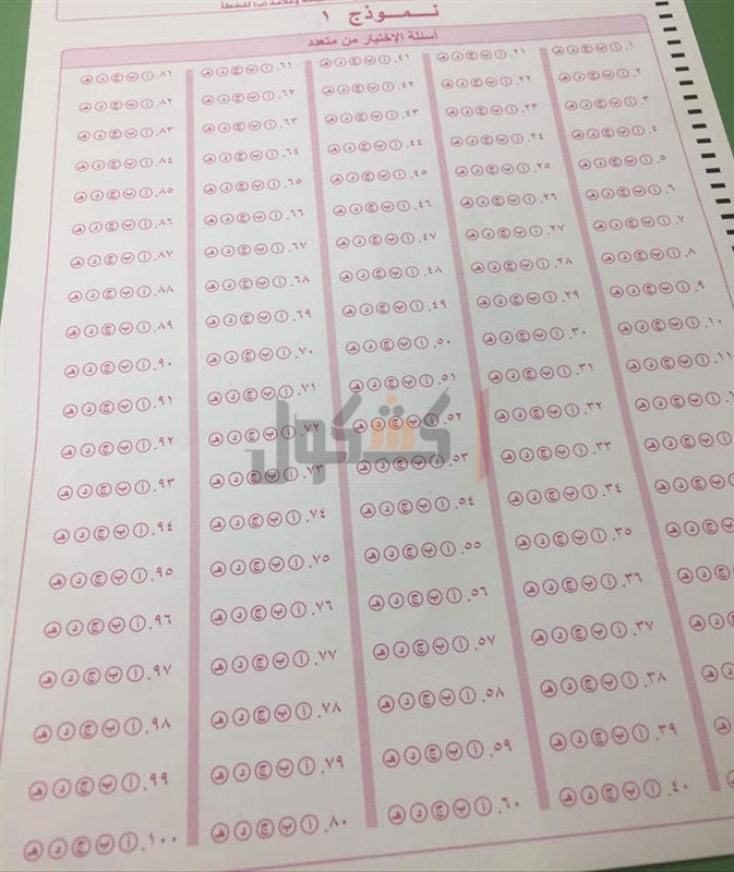 الأسئلة لرقم نموذج إجابة "البابل شيت" وفي حالة الخطأ يحتمل الدراس وحده