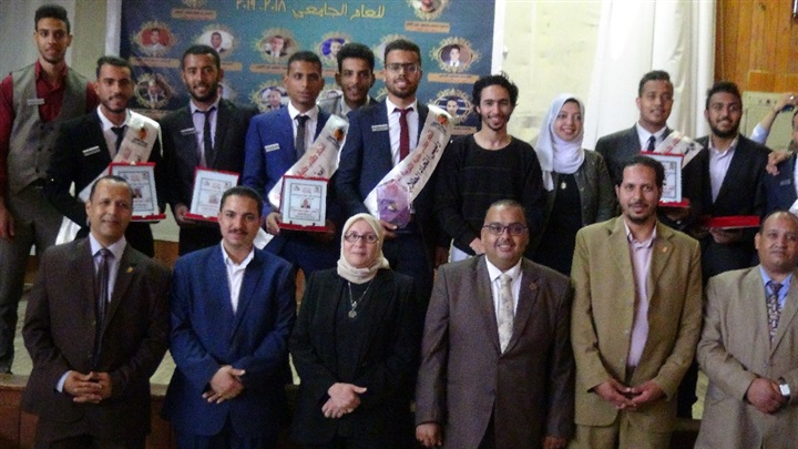 وفي نهاية الاحتفالية كرمت إدارة الكلية رئيس اتحاد الطلاب، وأمناء اللجان، والطالبين المثاليين بالكلية.