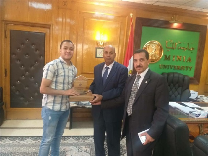 رئيس جامعة المنيا يتسلم درع اتحاد الطلاب