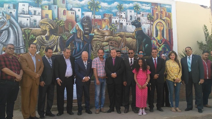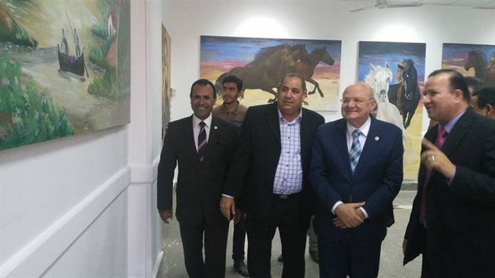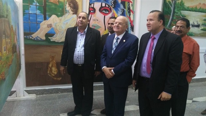 رئيس الجامعة بالأعمال الفنية التي نفذها طلاب قسم التربية الفنية والذي تعكس لتحقيق