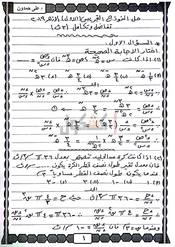 أجاب الدكتور على حمدون المدرس الأول للرياضيات بقطاع المعاهد الأزهرية، عن النموذج التجريبى الذى اعلنته إدارة قطاع المعاهد لمادة التفاضل والتكامل لطلاب القسم العلمى للصف الثالث الثانوى الأزهري.