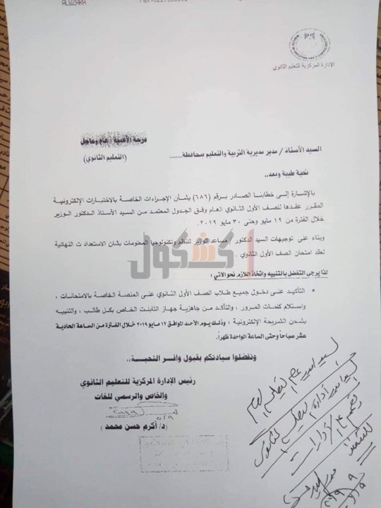1- سرعة التنبيه على كافة طلاب الصف الاول الثانوي بالدخول لمنصة الامتحانات الإلكترونية
