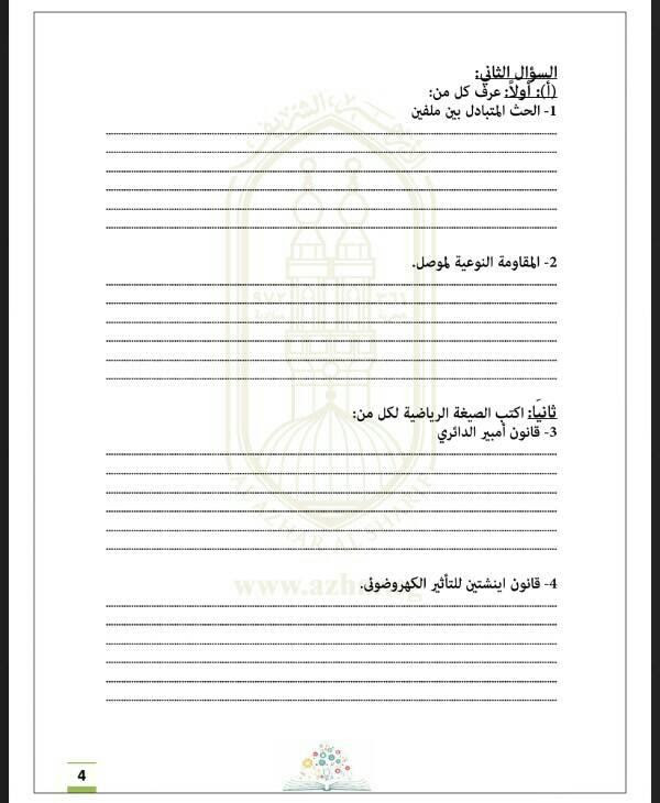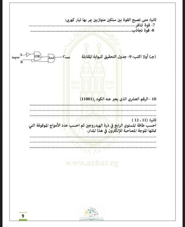 ننشر بوكليت الفيزياء للثانوية الأزهرية 2019 القسم العلمى