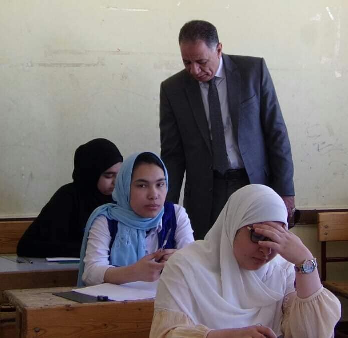 باللجان وتوفير بيئة آمنة للطلاب، موجها بفحص أوراق الإجابة والتأكد من كتابة الطالب