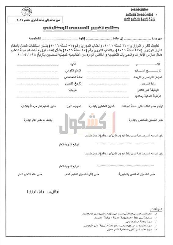 تربوي"الحاصل عليه المعلم والتخصص الذى يريد التغيير المسمي الوظيفي له