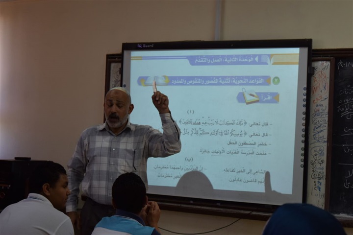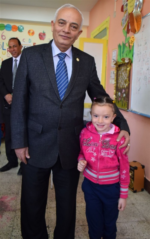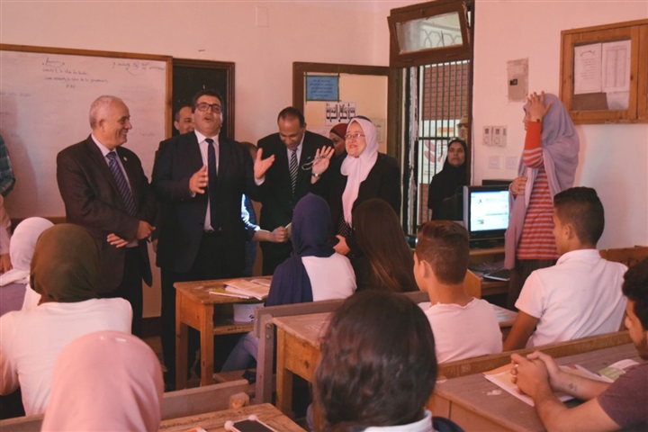 حجازى بتفقد عدد من الفصول حيث حضر الحصة الأولى للغة العربية للصف الأول الأعدادى،
