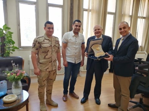 درع الكلية للدكتور خالد عبد الباري رئيس جامعة الزقازيق وتسلمه نيابة عنه الدكتور