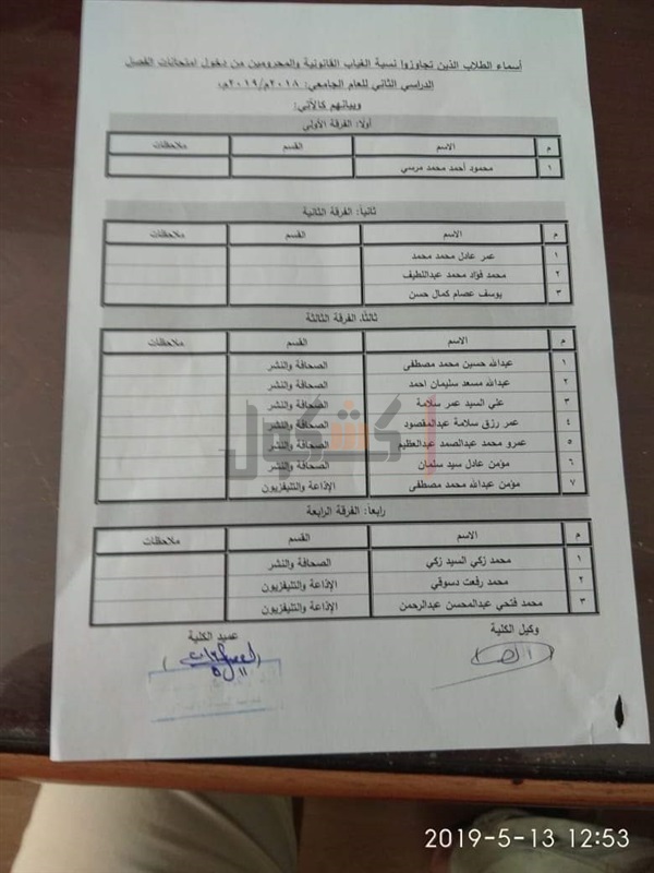 أعلنت كلية الإعلام بجامعة الأزهر بالقاهرة، أسماء الطلاب الممنوعين من دخول امتحانات الفصل الدراسي الثاني، بسبب تجاوزهم النسبة القانونية المقررة للغياب.