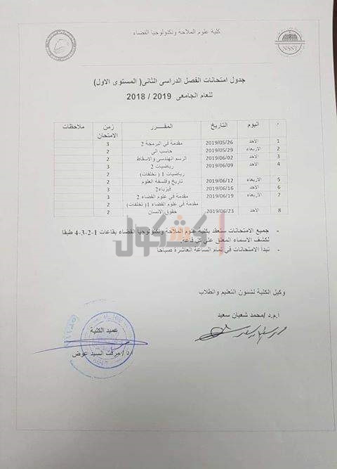 جامعات ننشر جدول امتحانات علوم الملاحة وتكنولوجيا الفضاء ببني سويف إسراء جمال الجمعة 17/مايو/2019 - 03:51 م 5/17/2019 3:51:00 PM طباعة أعلنت جامعة بني سويف عن جدول امتحانات الفصل الدراسي الثاني بكلية علوم الملاحة وتكنولوجيا الفضاء facebook twitter whats شارك