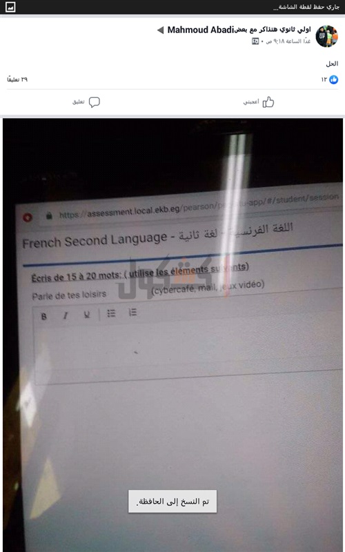 تداول أسئلة اللغة الفرنسية للأول الثانوي عبر "السوشيال ميديا"