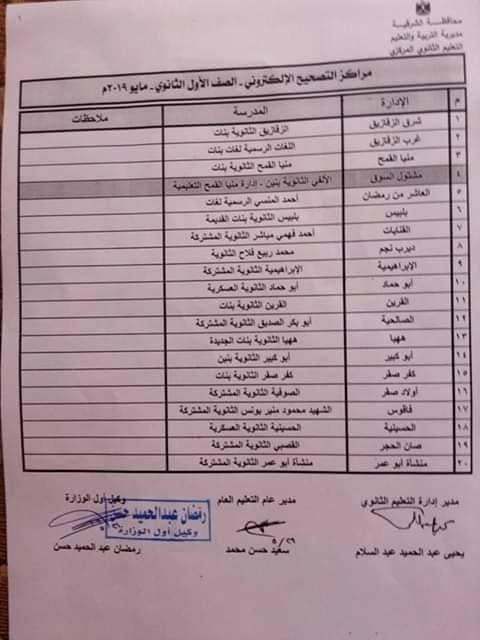كما حصل كشكول أيضا علي أماكن مراكز التقدير الالكتروني بمحافظة الشرقية.