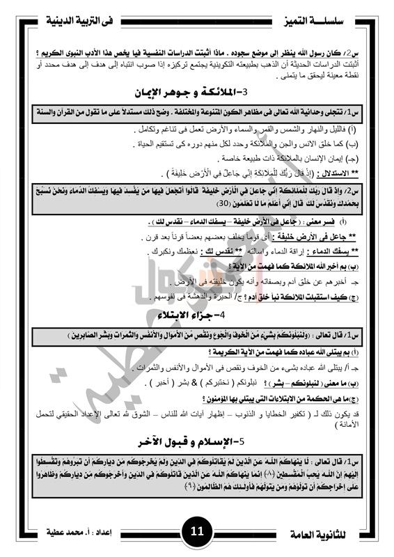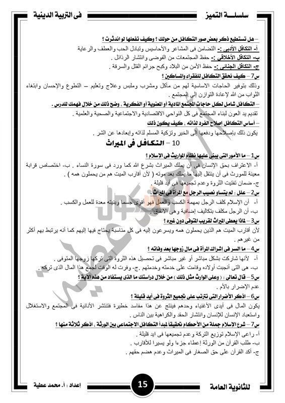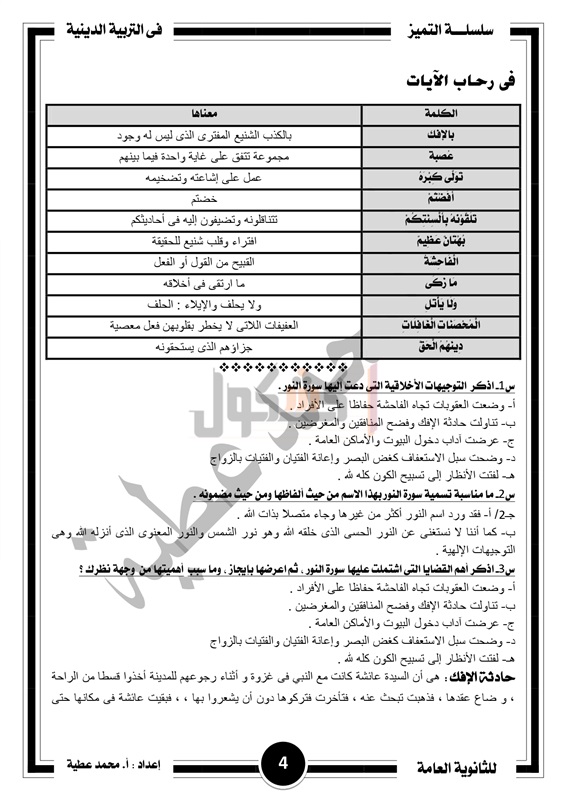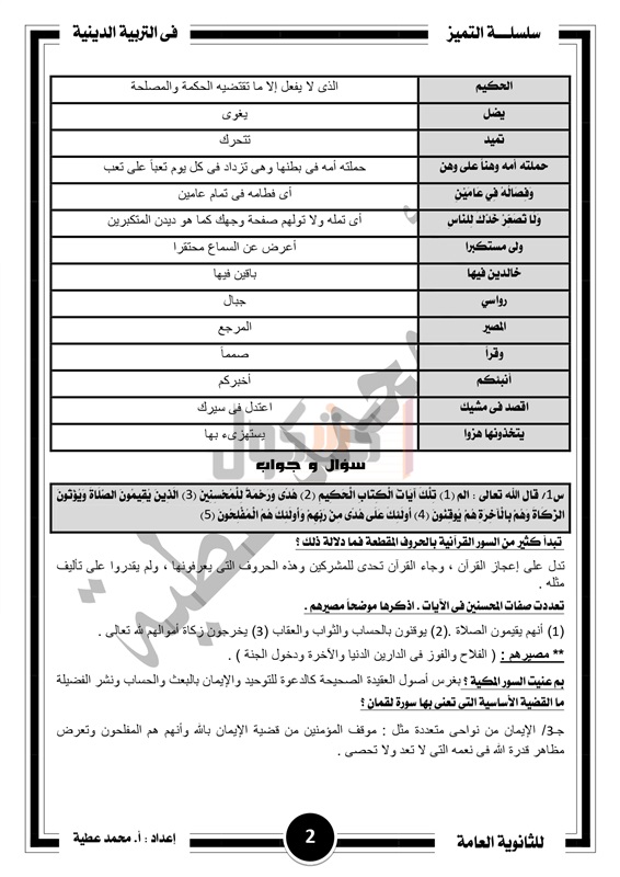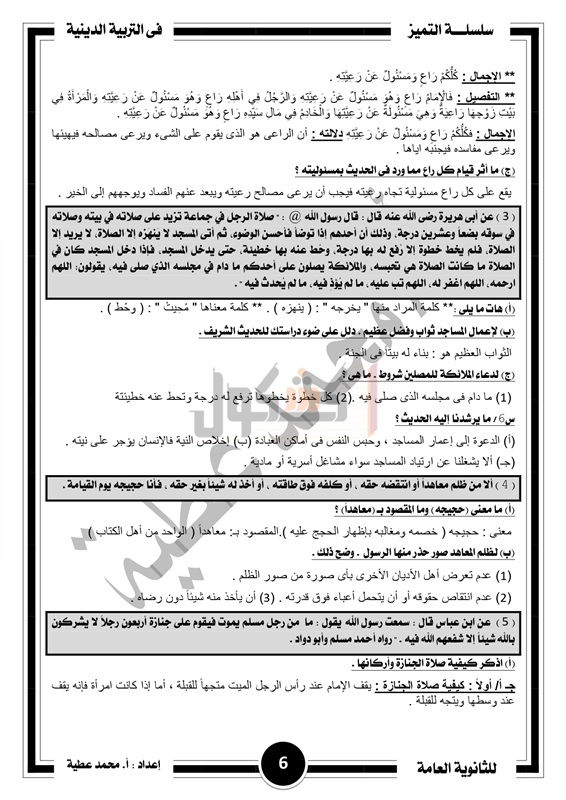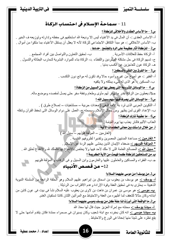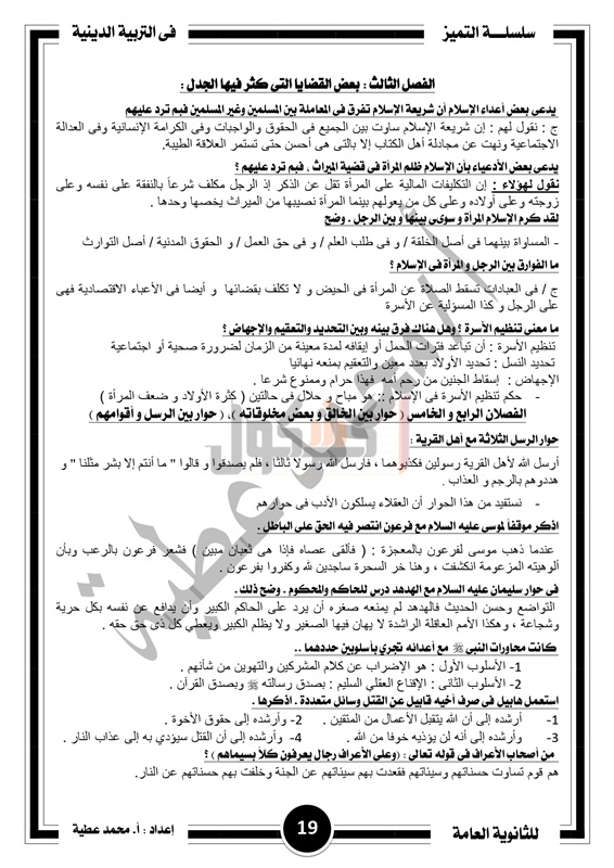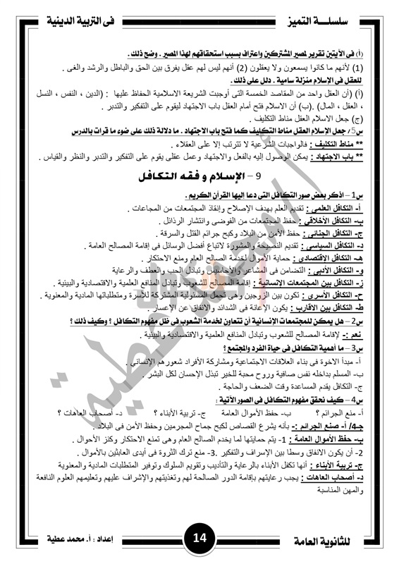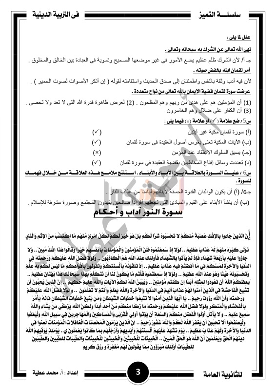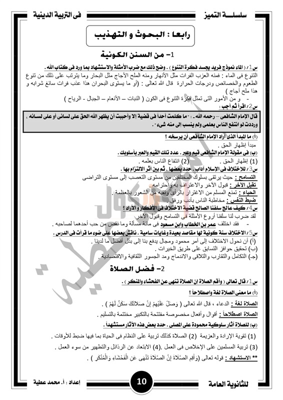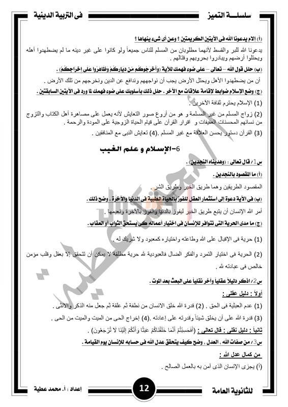 ننشر مراجعة مادة التربية الدينية الإسلامية للثالث الثانوي