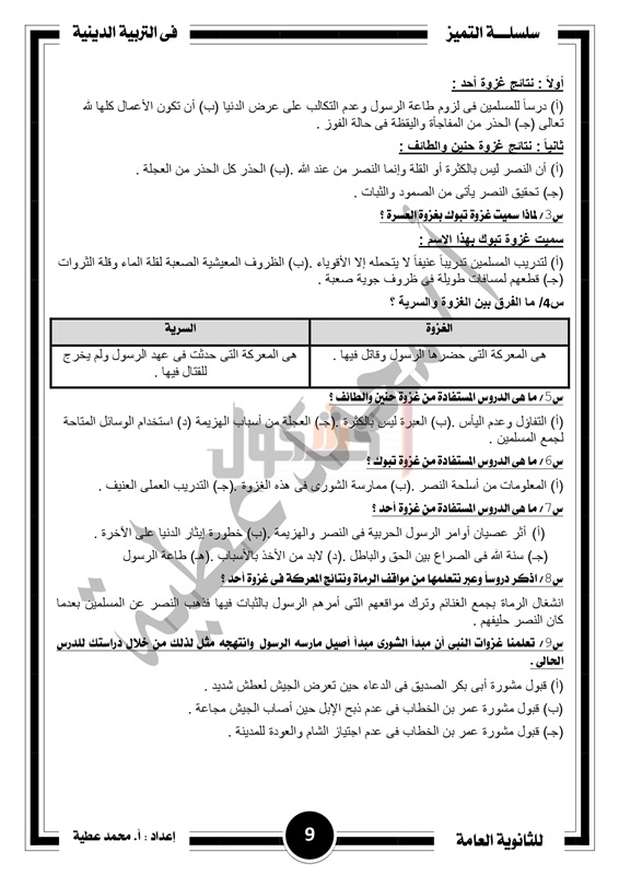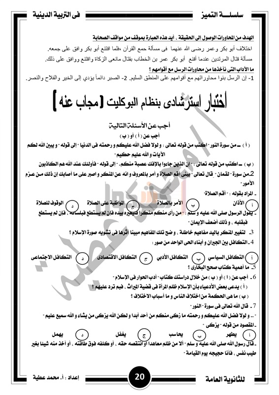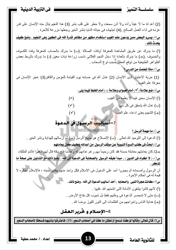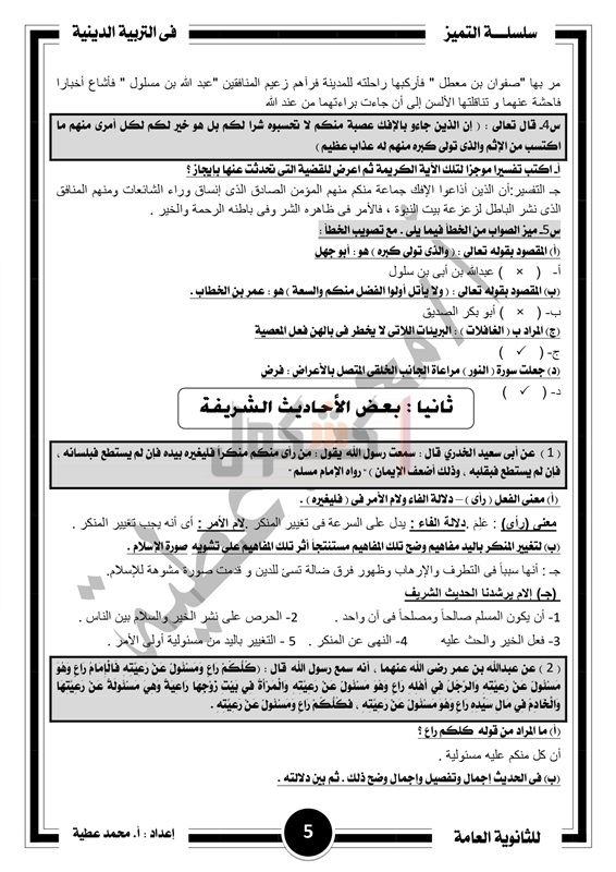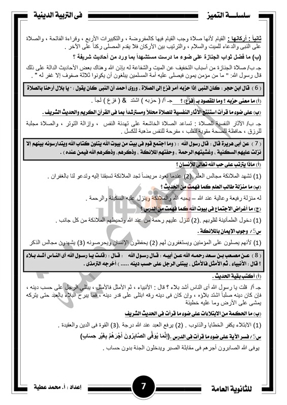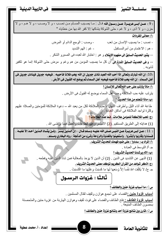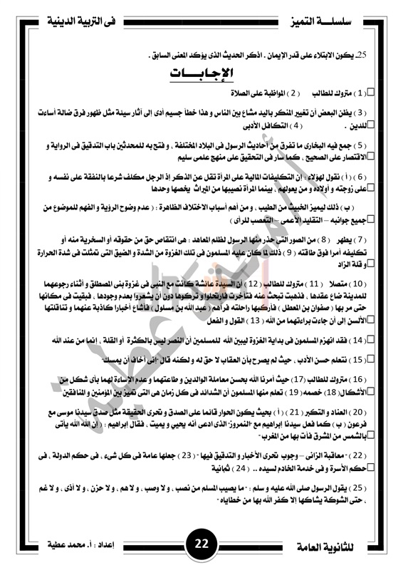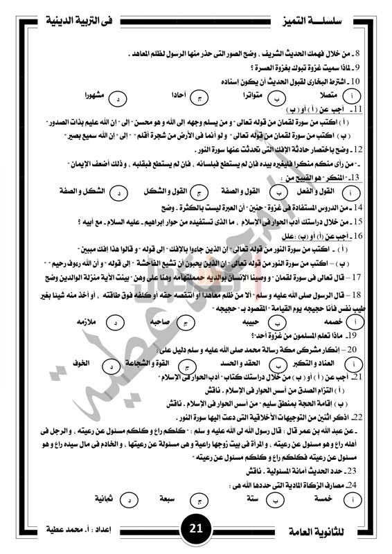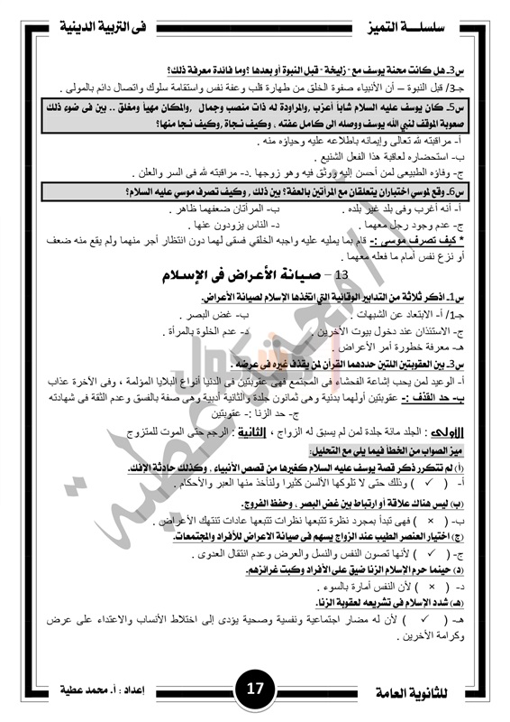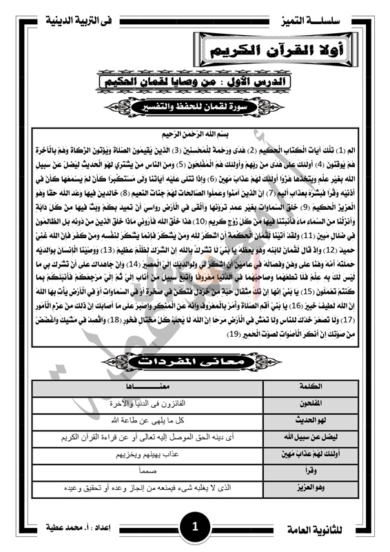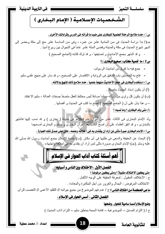 ننشر مراجعة مادة التربية الدينية الإسلامية للثالث الثانوي
