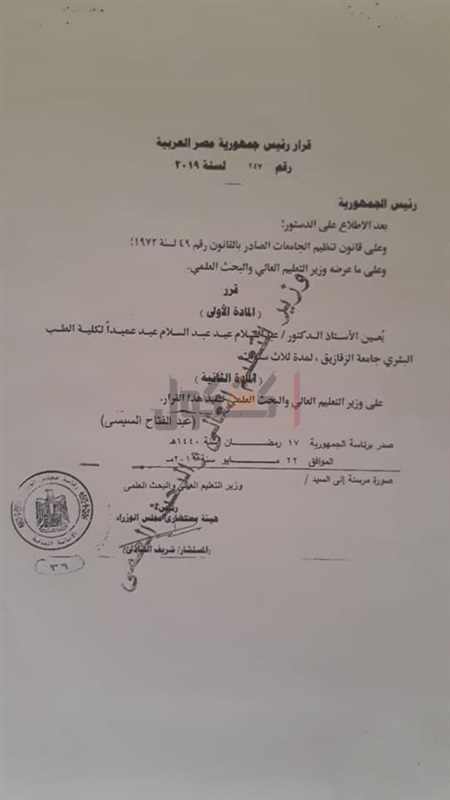 "عبد السلام عيد" عميدًا لطب بشري الزقازيق