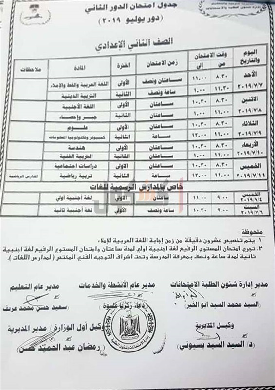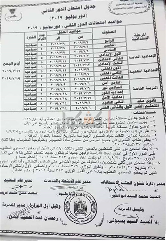 ننشر جداول امتحانات الدور الثاني بـ"تعليم الشرقية"