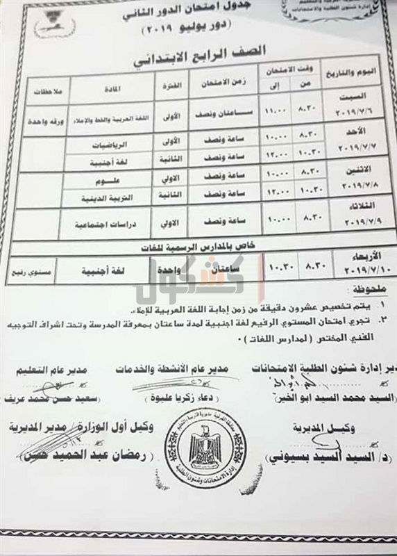 أعلنت مديرية التربية والتعليم بمحافظة الشرقية، جداول امتحانات دور يوليو "الدور الثاني" لتلاميذ المراحل المختلفة، حيث جاءت كالتالي: