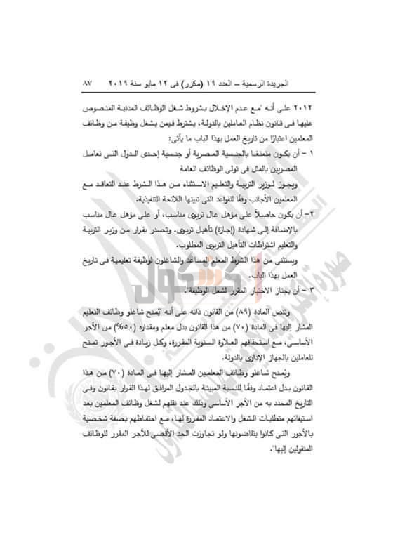 رقن (٩٣) لسنة ٢٠١٢ قد اشترط فيمن يشغل وظيفة من وظائف المعلمين اعتباراً من تاريخ