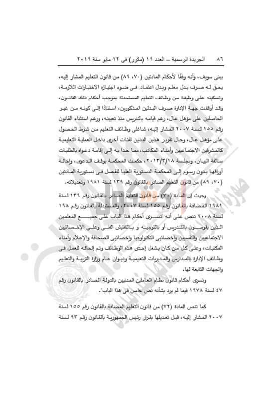 من القرار بقانون رقم (٩٣) لسنة ٢٠١٢ السالف الذكر ، والمادة (٧٢) من قانون التعليم