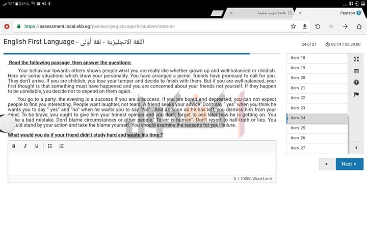 بعد أقل من ربع ساعة على موعد بدء الامتحان، مطالبين بسرعة حل الأسئلة.