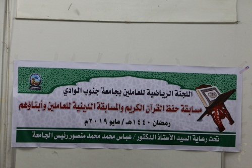 قام الدكتور عباس منصور رئيس جامعة جنوب الوادي بقنا، بتسليم جوائز الفائزين في مسابقة القرآن الكريم، والتي نظمتها اللجنة الرياضية للعاملين وأبنائهم بمناسبة شهر رمضان المعظم، بحضور الدكتور محمود خضارى نائب رئيس الجامعة لشئون الدراسات العليا والبحوث، والدكتور محمد ابو الفضل بدران نائب رئيس الجامعة لشئون التعليم والطلاب، والدكتور يوسف الغرباوى نائب رئيس الجامعة لشئون خدمة المجتمع وتنمية البيئة، والدكتور جمال تاج عبد الجابر عميد كلية الهندسة.