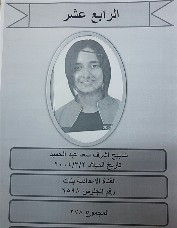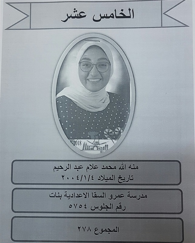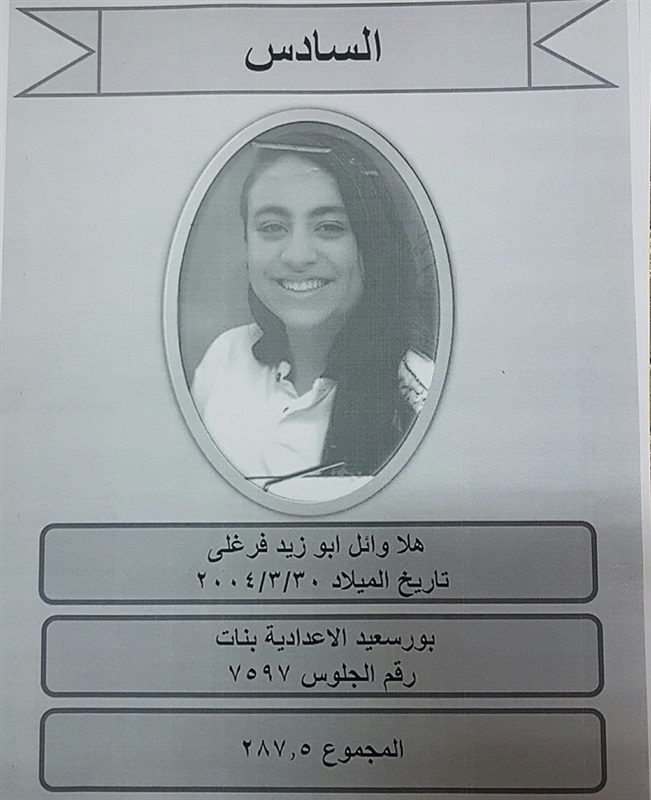 ينشر موقع "كشكول" أسماء أوائل الشهادة الإعدادية بمحافظة بورسعيد، وذلك بعد اعتمادها من اللواء عادل الغضبان محافظ بورسعيد اليوم، بنسبة نجاح ٨٠.٥٥ % بمدرسة الزهور الإعدادية للبنات، بحضور الدكتور نبوى باهى وكيل وزارة التربية والتعليم، والدكتور عاطف علم الدين رئيس مجلس أمناء المحافظة و على الالفى نقيب معلمى بورسعيد وقيادات التعليم بالمحافظة.