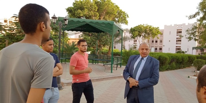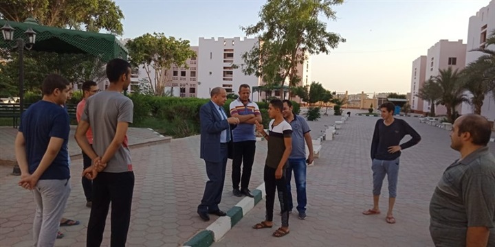 رئيس جامعة بني سويف يطمئن على طلاب وطالبات المدن الجامعية ويهنئهم بالعيد