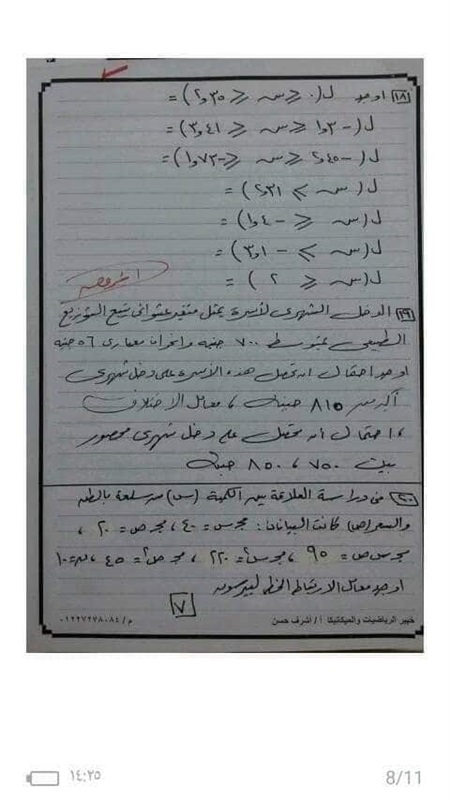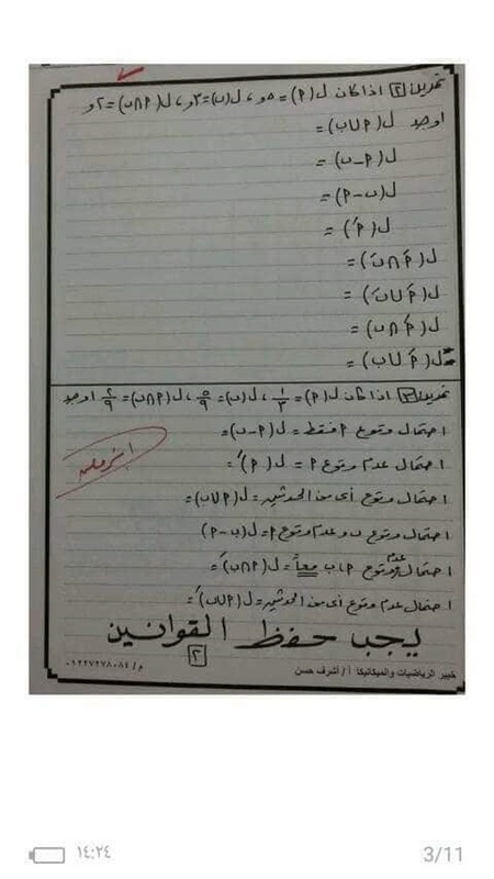 وفيما يلي ينشر "كشكول" المراجعات خاصة بمادة الإحصاء