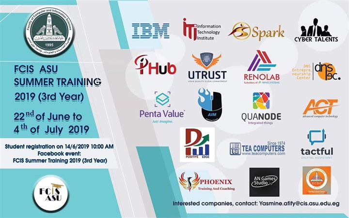 بجامعة عين شمس فرص التدريب الصيفي لطلاب الفرقه الثالثة ، وذلك في كبريات الشركات