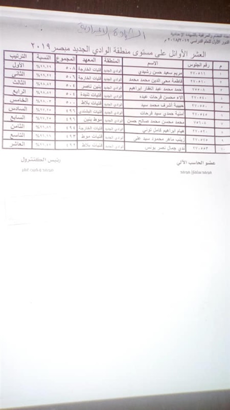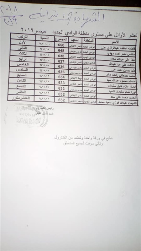 وينشر لكم كشكول أسماء أوائل الشهادتين بمحافظة
