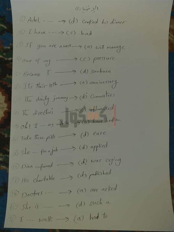 للإجابات على الأسئلة المتداولة من امتحان مادة اللغة الأجنبية الأولى "الإنجليزية"،