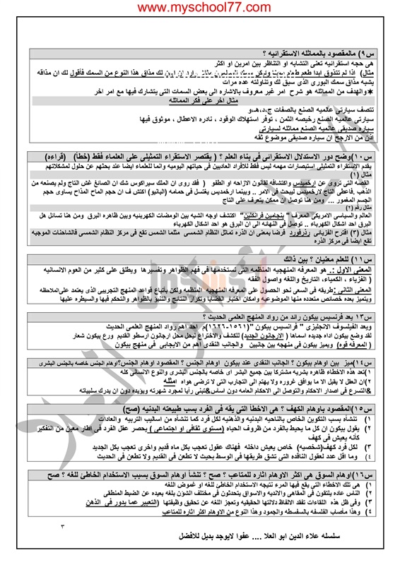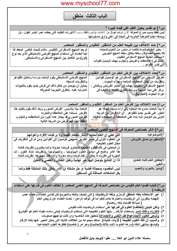وفيما يلي ينشر "كشكول" المراجعات الخاصة بمادة المنطق.