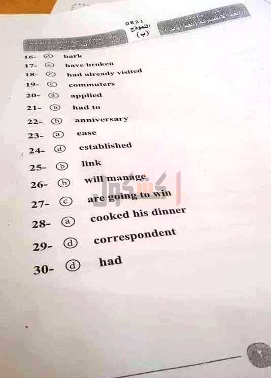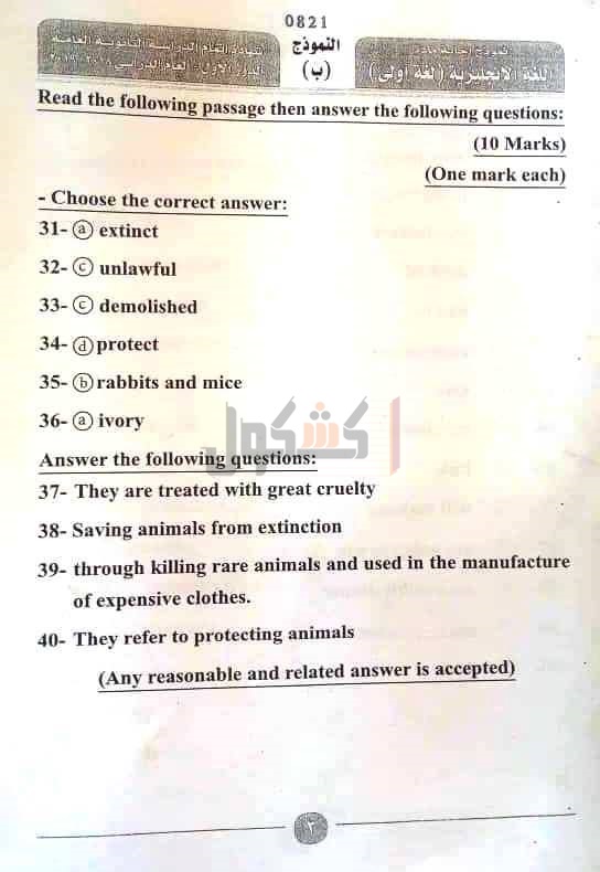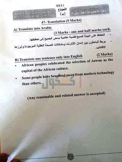 "كشكول" على النموذج الرسمي لإجابات مادة اللغة الأجنبية الأولى"الإنجليزية"،
