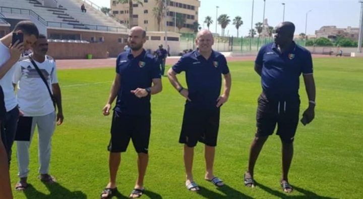 الوفد بتجهيزات الملعب وغرف خلع الملابس.