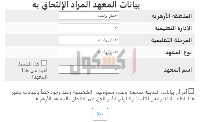 استمارة التقدم وطريقة التسجيل برياض الأطفال والصف الأول الإبتدائى الكترونيا بالمعاهد الأزهرية