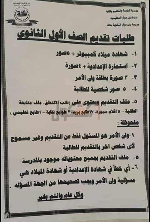 ننشر الأوراق المطلوبة للتقديم بالأول الثانوي