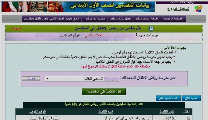 يجب مراجعة الأسماء جيدا قبل الشروع فى الحاق التلاميذ .