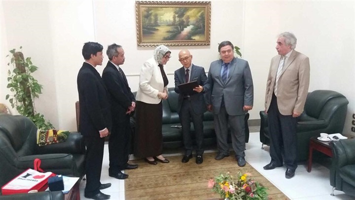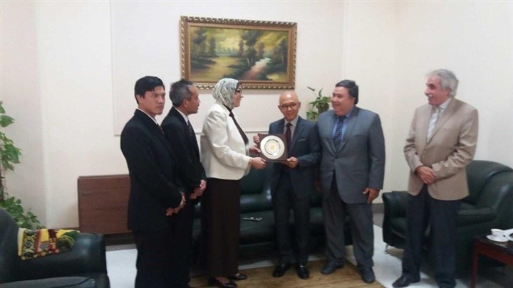 حيث ضم الوفد الدكتور وحيدو عبد الرحيم مدير المركز الثقافي الإندونيسي بالقاهرة، ومساعد مكتب التبادل الثقافي والدكتور عثمان شهاب المستشار التربوي والثقافي بسفارة جمهورية إندونسيا بالقاهرة ، محمد آجي سوريا نائب رئيس البعثة بالقاهرة بحضور الدكتور حسن يوسف عميد معهد الدراسات الأفروأسيوية بجامعة قناة السويس ود. عبد الحكيم الطحاوي عميد معهد الدراسات والبحوث الأسيوية الأسبق ، ود. طارق فهمي أستاذ العلوم السياسية بجامعة القاهرة وعدد من المرافقين .