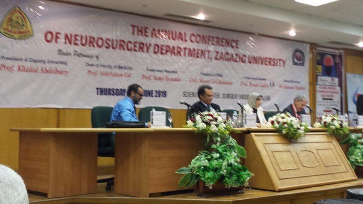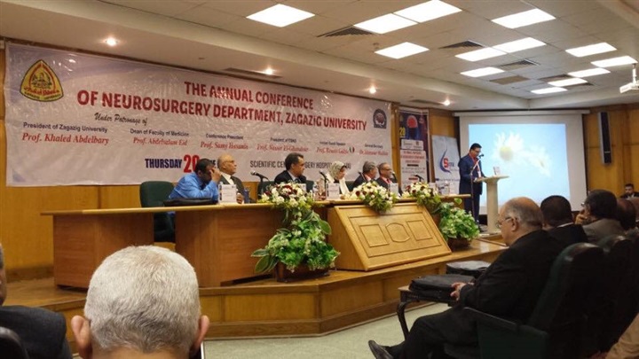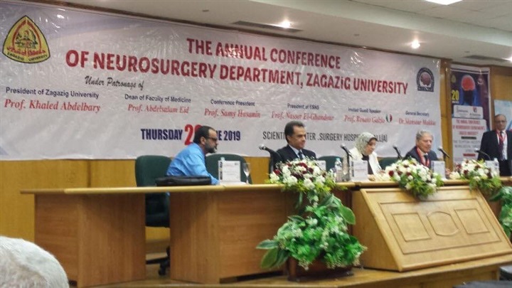 افتتحت الدكتورة ميرفت عسكر نائب رئيس جامعة الزقازيق لشئون الدراسات العليا والبحوث اليوم الخميس 20 يونية 2019 أعمال المؤتمر السنوي لقسم جراحة المخ والأعصاب الذي يعقد بالتعاون مع الجمعية المصرية لجراحة المخ والأعصاب بالمركز العلمي بمستشفي الجراحة تحت رعاية الدكتور خالد عبد الباري والدكتور عبد السلام عيد عبد السلام عميد الكلية بمشاركة عدد كبير من الأساتذة والمتخصصين في جراحة المخ والأعصاب ورئاسة الدكتور سامي حسانين رئيس الجمعية المصرية لجراحة المخ والأعصاب رئيس القسم الدكتور ناصر الغندور رئيس الجمعية المصرية لجراحة المخ والأعصاب، والدكتور منصور مكية مقرر المؤتمر .