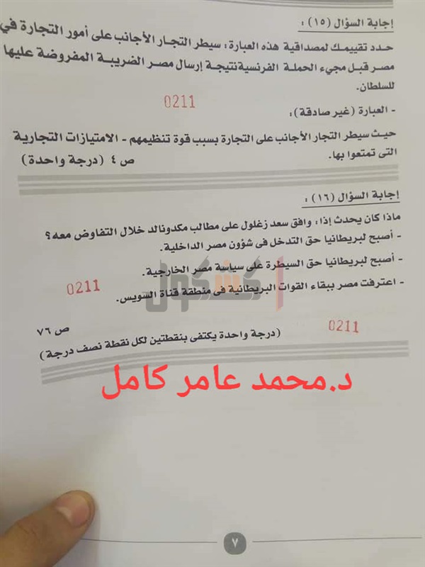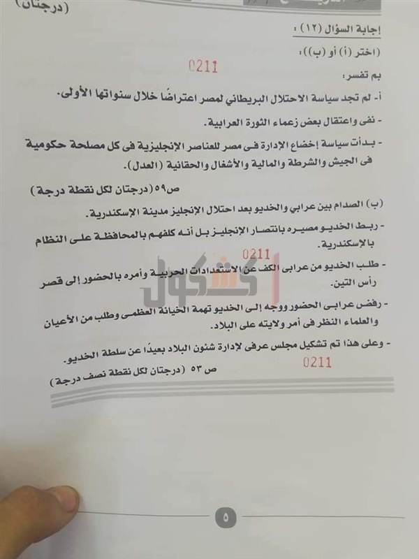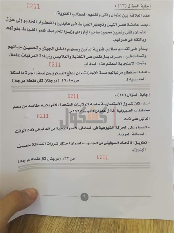 "كشكول"، نموذج الإجابة الرسمي للامتحان، والذي جاء كالتالي: