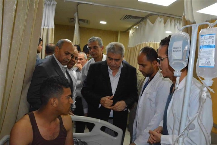 جاء ذلك أثناء مرافقته اللواء قاسم حسين، محافظ المنيا، للاطمئنان علي حالة المصابين، والتي أستقبلتهم مستشفي المنيا الجامعي لتلقي العلاج والعناية الطبية اللازمة.
