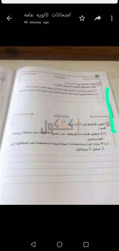 تداول طلاب الثانوية العامة، القسم العلمي، امتحان مادة الكيمياء، عبر مواقع التواصل الاجتماعي "فيس بوك"، وذلك بعد مرور أقل من نصف ساعة على بدء الامتحان.