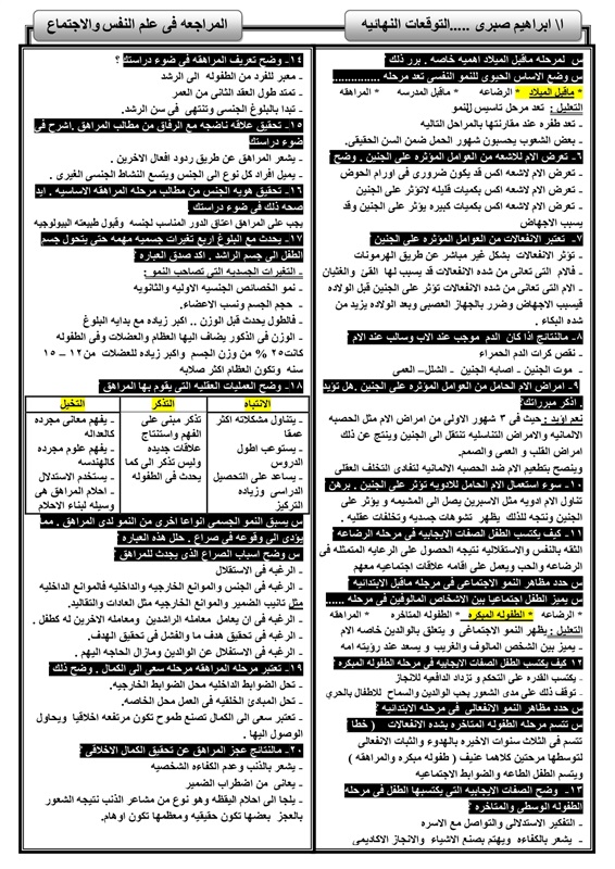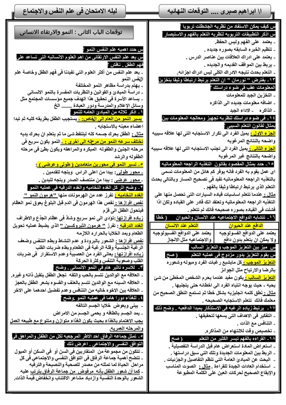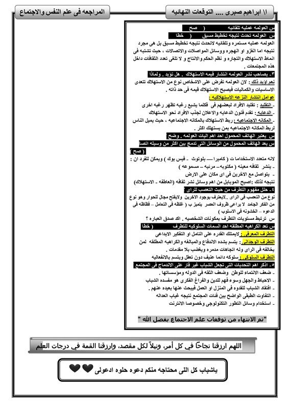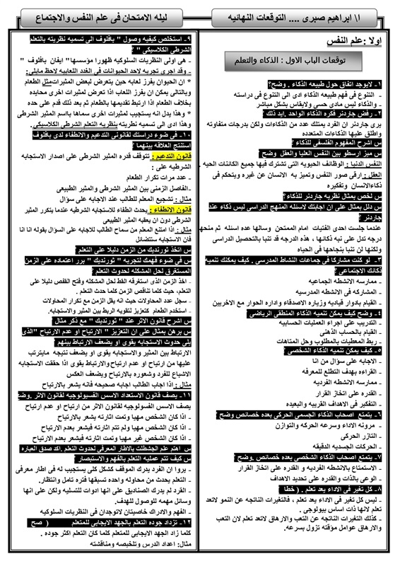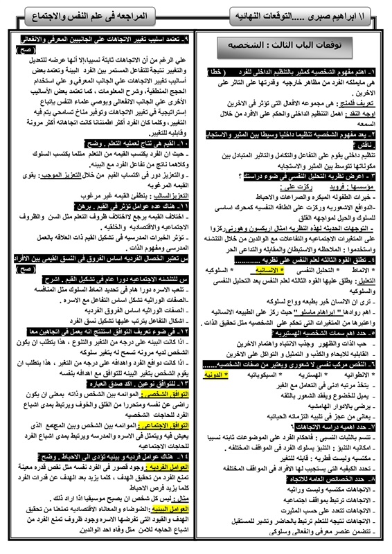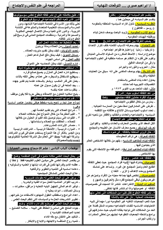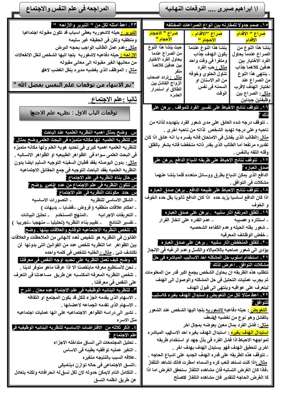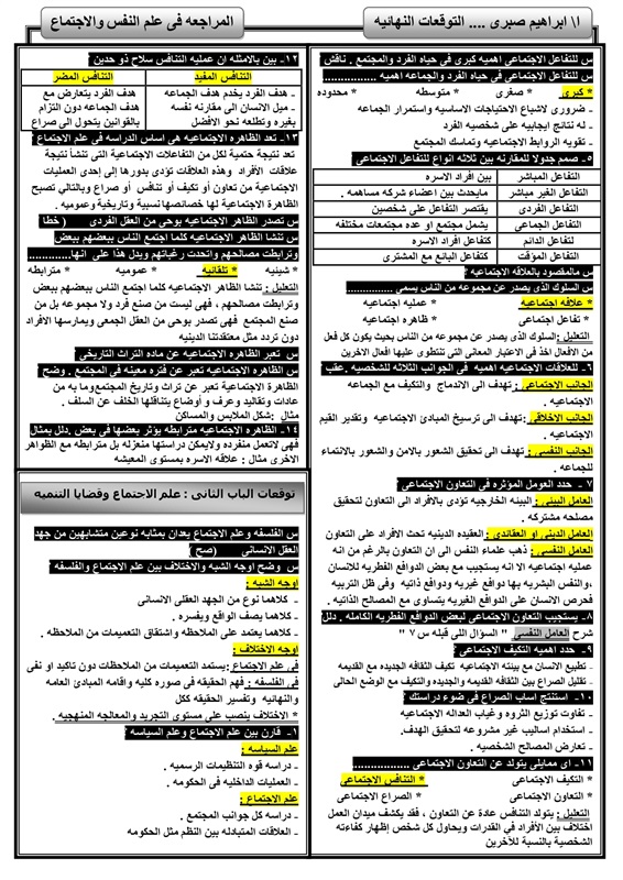 ننشر المراجعة النهائية في "علم النفس والاجتماع" للثانوية العامة
