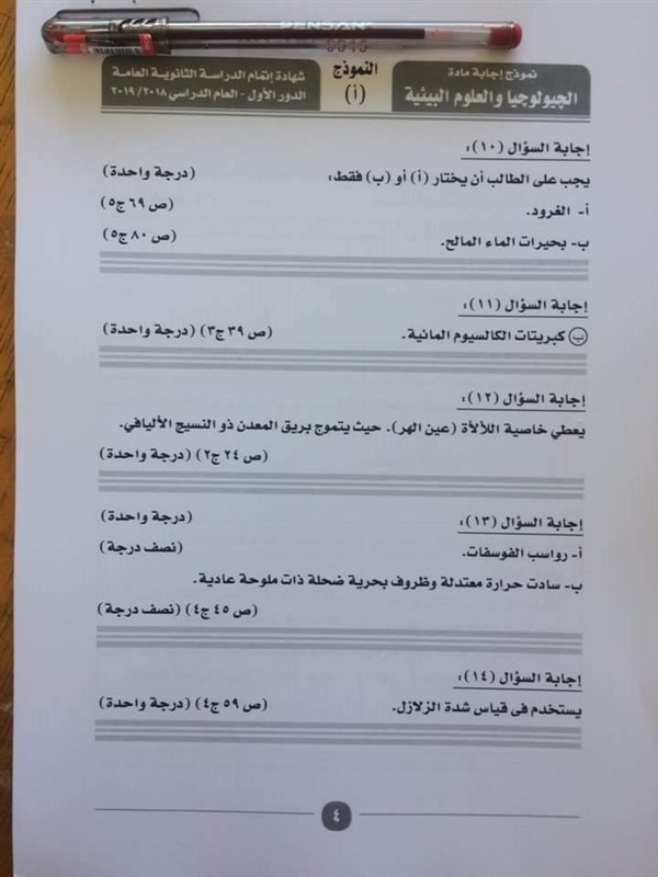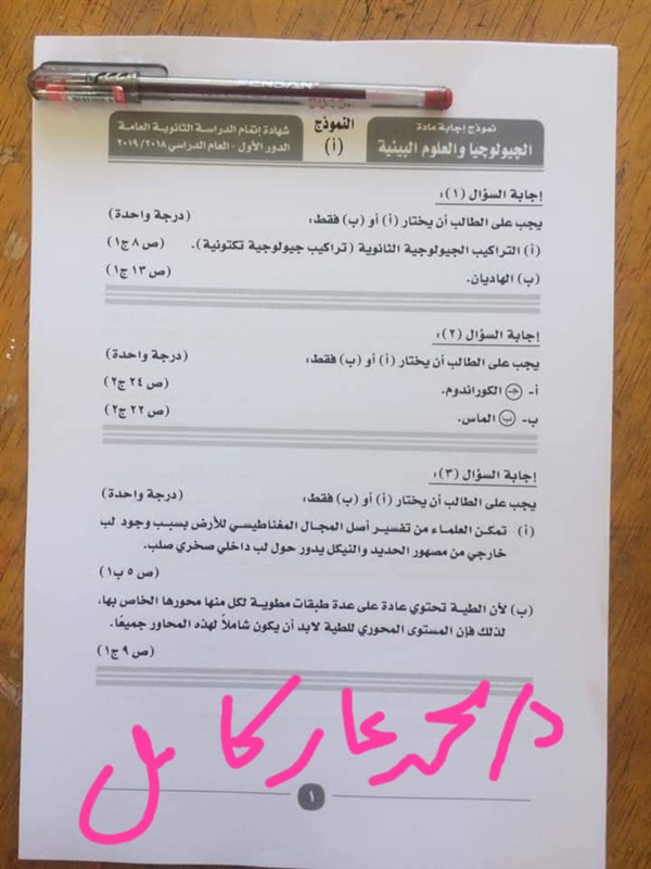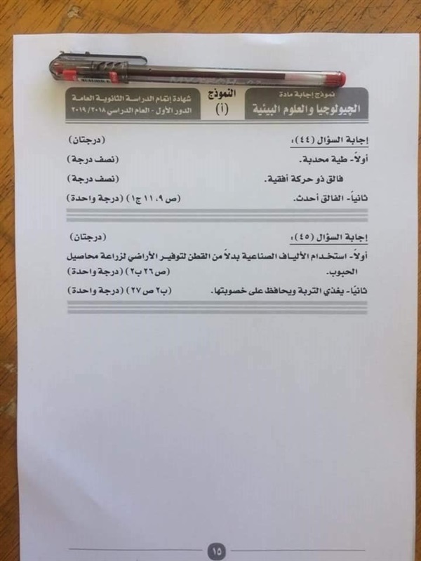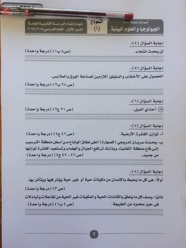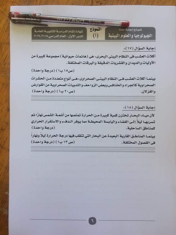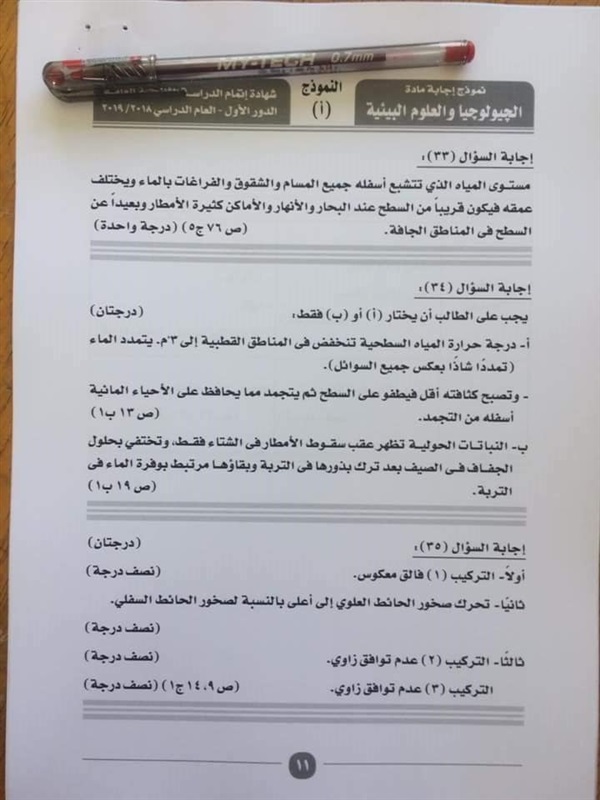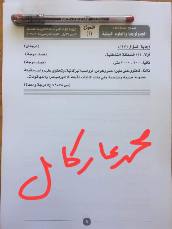 نموذج إجابة امتحان الجيولوجيا للثانوية العامة 2019