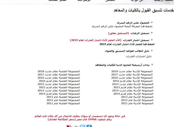 أعلن موقع التنسيق الإلكتروني، فتح باب تسجيل أداء اختبارات القدرات لطلاب الثانوية العامة، للقبول بالجامعات للعام الجامعي الجديد 2019 – 2020، للكليات التي تحتاج القبول بها اجتياز هذه الاختبارات .