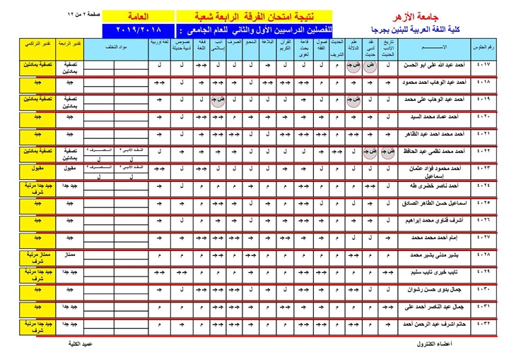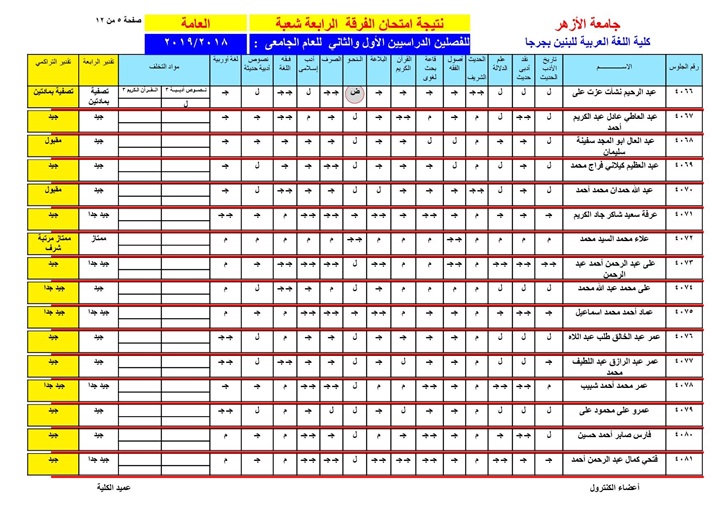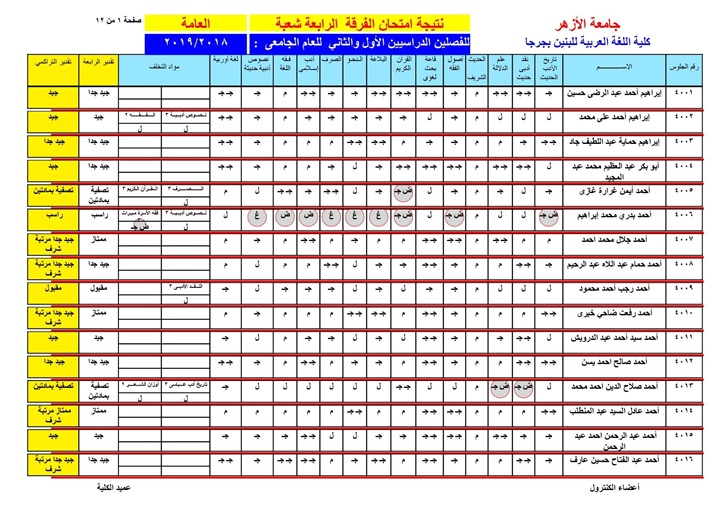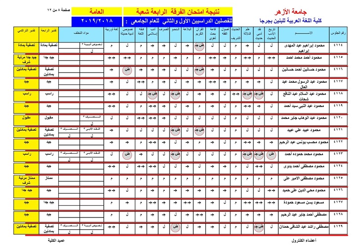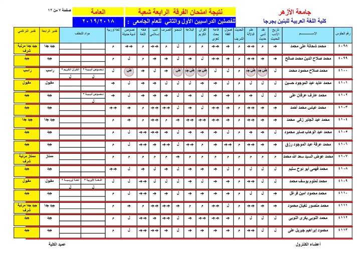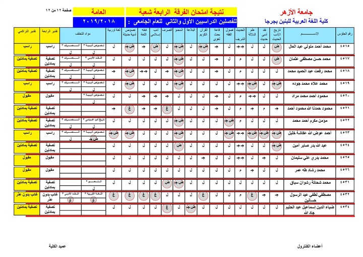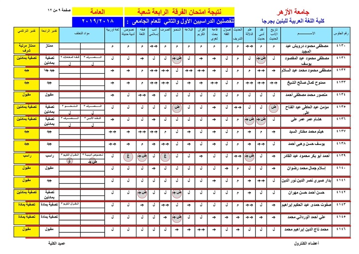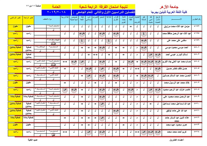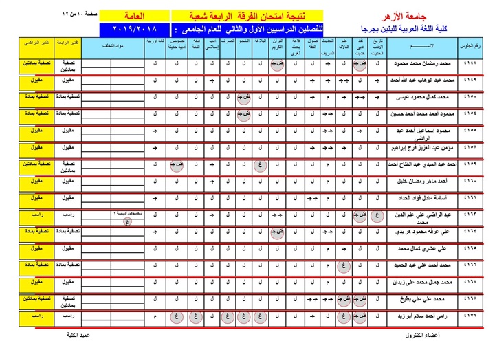 أعلنت كلية اللغة العربية بجامعة الأزهر فرع جرجا، نتيجة امتحانات الفرقة الرابعة بكل أقسامها بالكلية، وذلك للفصل الدراسى الثانى من العام الحالى 2018-2019، والتى ظهرت هقب 15 يوم فقط من انتهاء الامتحانات.